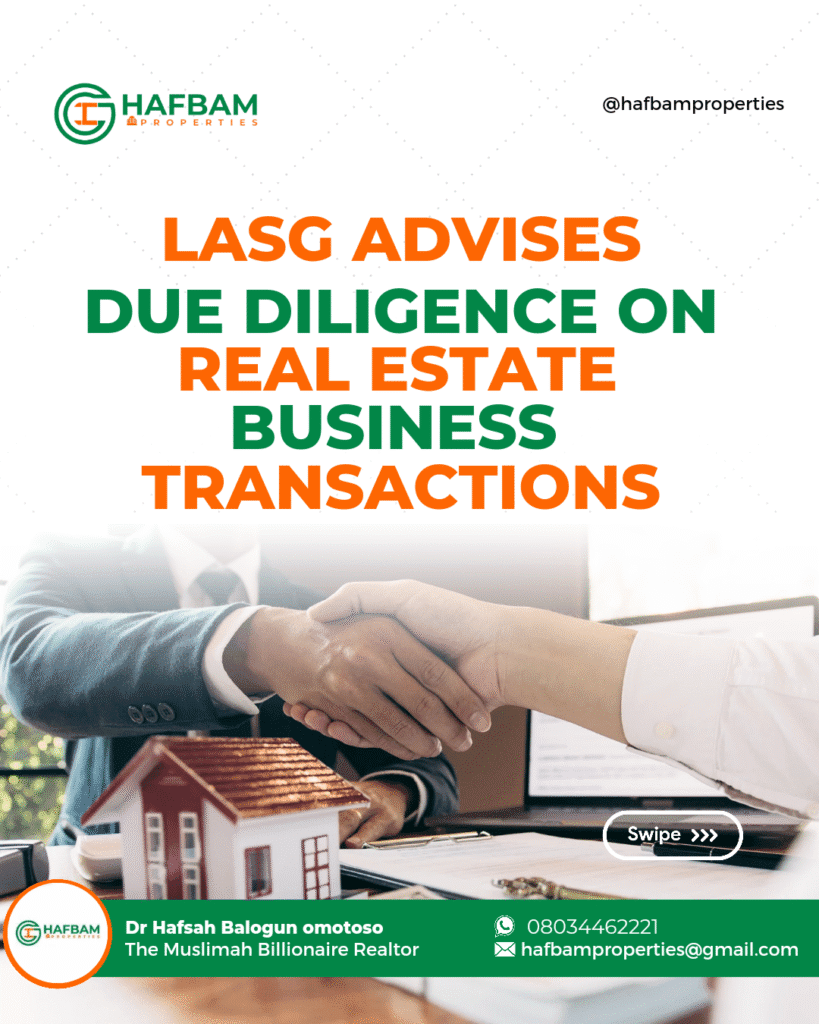Lagos State Government has advised potential real estate investors to always check the registration portal of the Lagos State Real Estate Regulatory Authority (LASRERA) via its website: lasrera.lagosstate.gov.ng for the list of registered individuals/organisations captured on the agency’s database before committing to any real estate business transactions in the state.