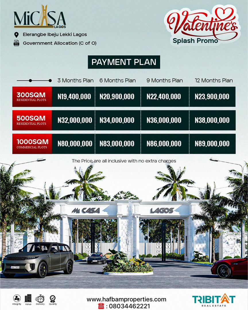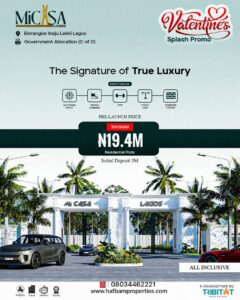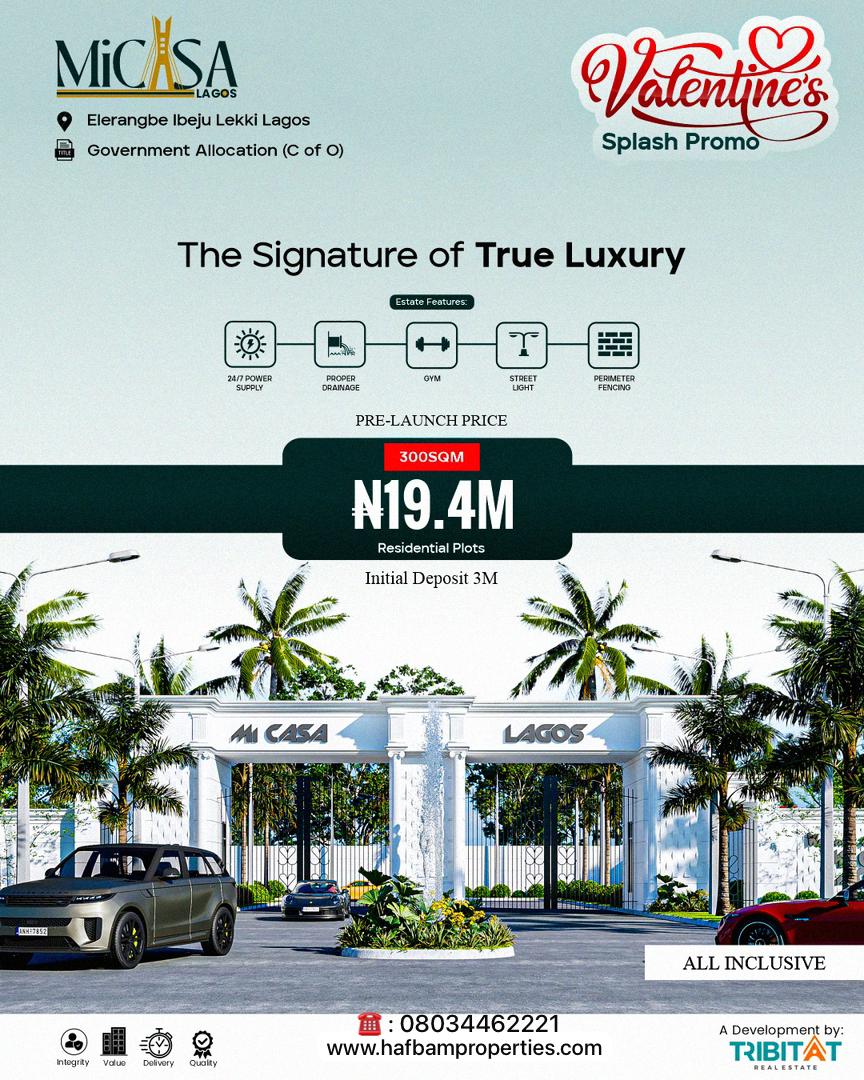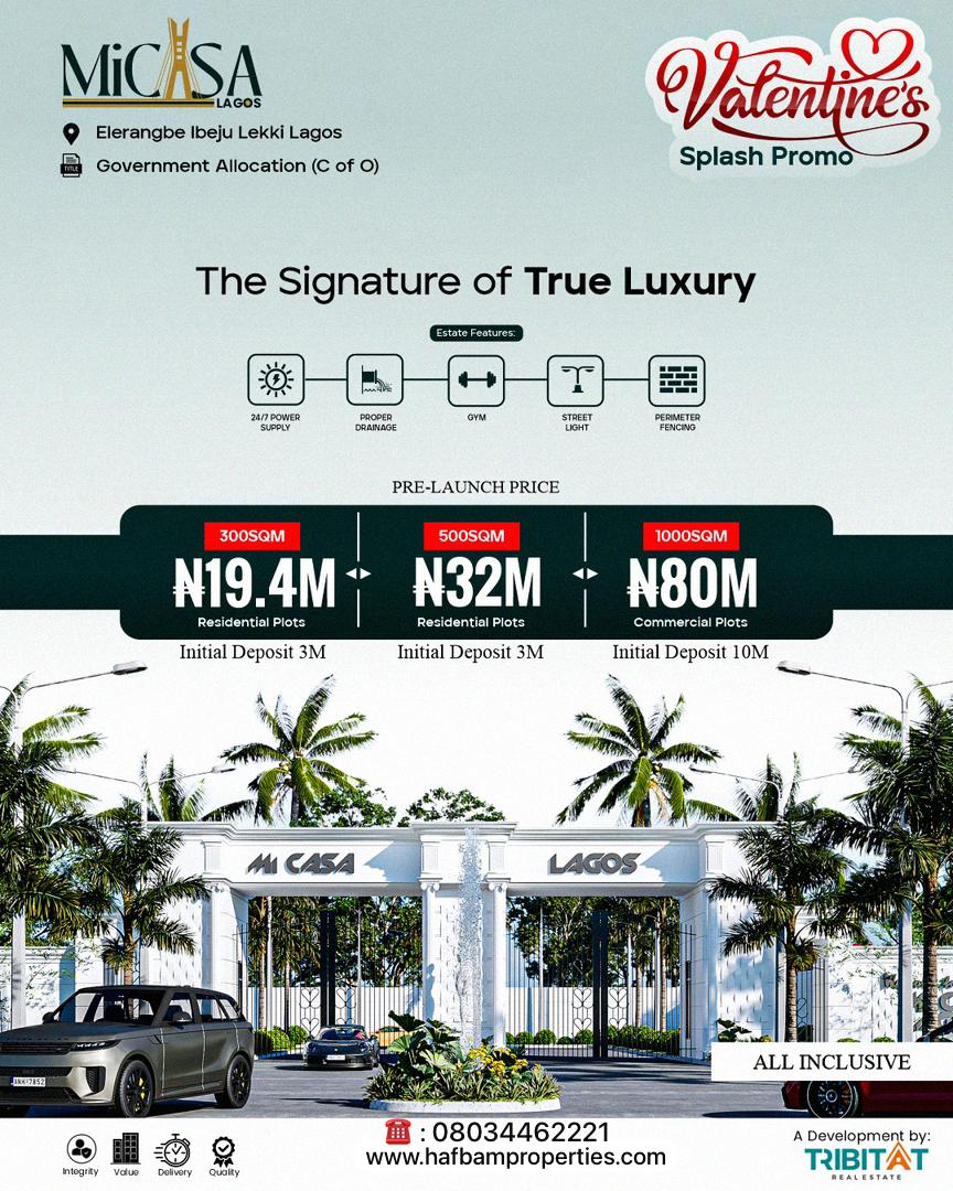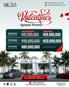 MiCasa Lagos, Elerangbe (Ibeju-Lekki) is offering an exclusive Valentine Splash Promo with limited-time price reductions on prime residential plots.