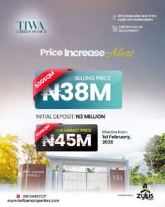 In less than 25 days, the price of Tiwa Phase II you see today will become history.